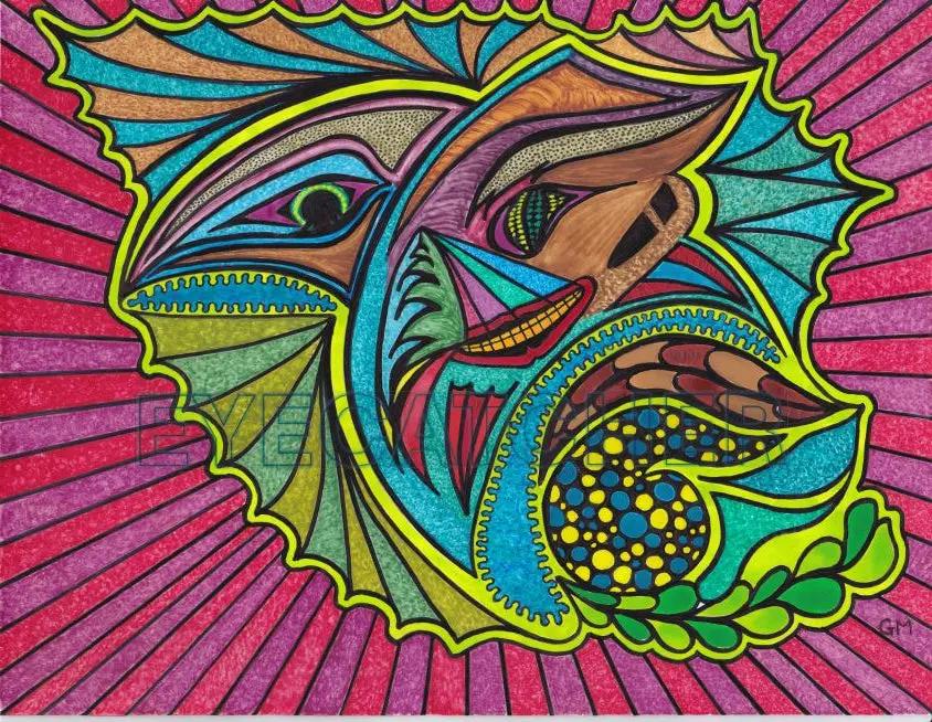 A Greg McGillis 12x15.5 inch acrylic face mounted print with floating hanging apparatus. Using ink and watercolour for his paintings with a dot push stroke for unique textures and style. The hanging hardware gives the piece the appearance of floating, as it suspends the painting 22mm off the wall. A reusable self-adhesive wall mount is included