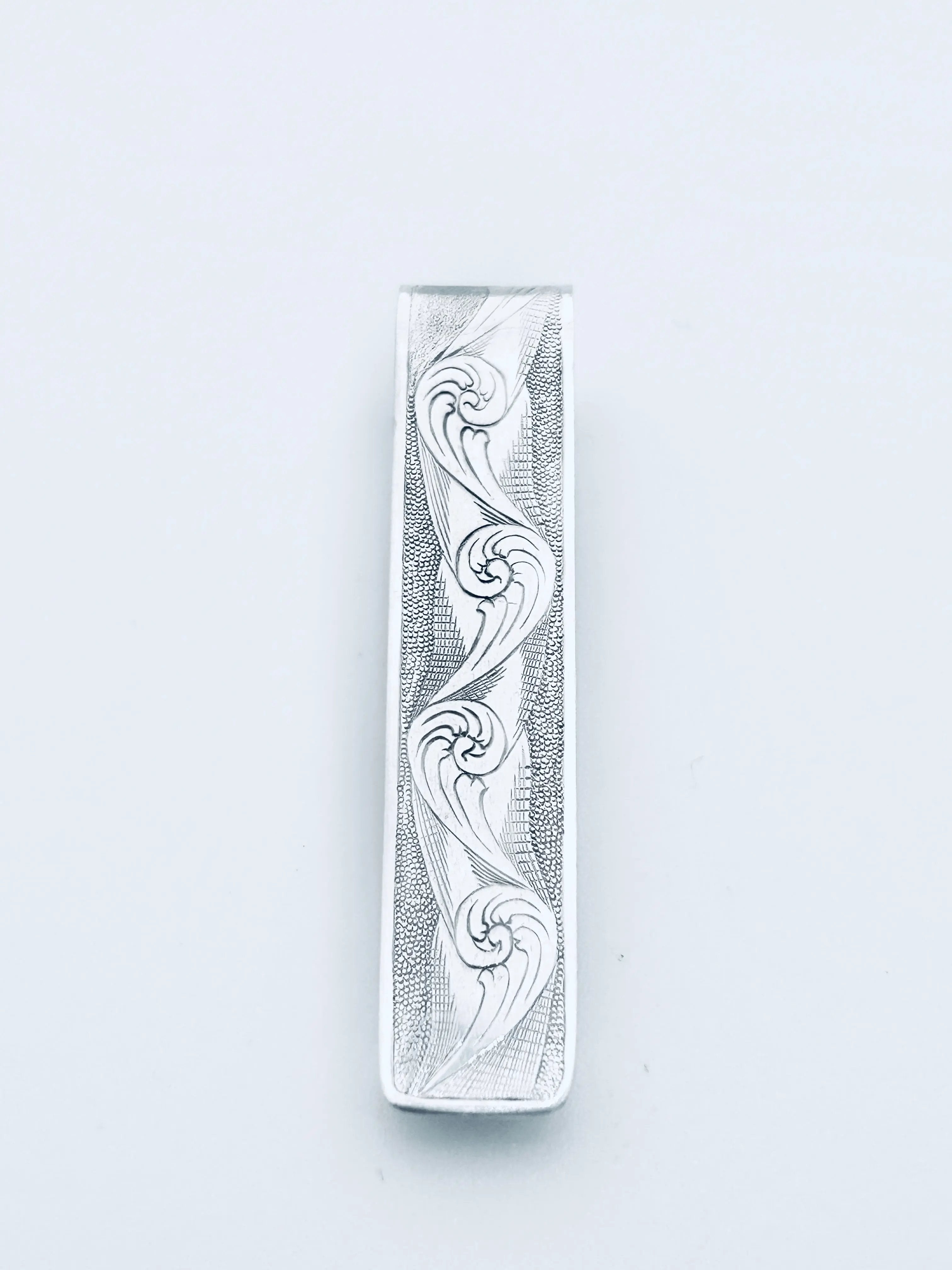 Fiddlehead Fern engraved solid 925 silver money clip/tie clip: